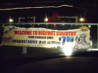 Speaking of CINNABAR SAM'S (read another set of reviews HERE), famous for its historical-themed interior and hearty pre- or post-Bigfoot field research meals: the business is up for sale. However, it remains open for hearty, mountain-style family dining. If you know of anyone interested in purchasing the building and taking over the business pass on the word. The owner, Steve Paine, is a font of knowledge of local history, and has shown a few Bigfoot-themed aspects in his business decor over the years.