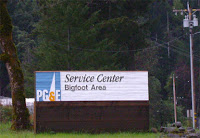 Even PACIFIC GAS AND ELECTRIC (PGE) gets in on the fun. The sign near their electrical service center, just off Highway 96 outside of town, reads "BIGFOOT AREA"