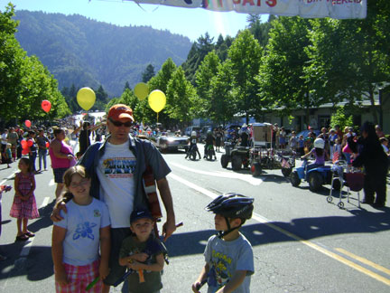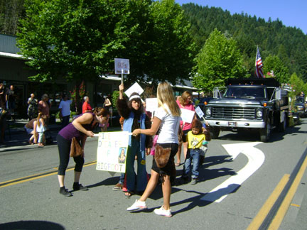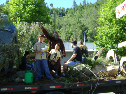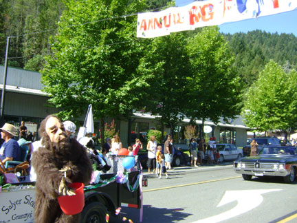 Willow Creek's annual end-of-summer Labor Day event, BIGFOOT DAYS, has now been around for fifty years! BIGFOOT'S BLOG was on hand to document this year's celebration, and a Squatchy one it was. Normally only a few goofy gorilla suits are mustered, but it seemed this time nearly every other float had a Bigfooty theme. Though we can't show you everything that occurred that morning, starting promptly at 10:00 a.m. this time, here is a collection of what we liked the most: seeing our kid in the fire truck and seeing the community get geared up into the Bigfoot Spirit. We aren't going to be our usual wordy self here, so just enjoy the photos. Hopefully we can get the captions to be meaningful enough.