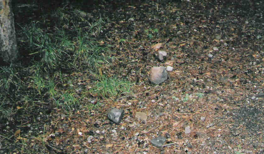 After searching through the woods, we found the location where the rock was thrown from. It came from this small pile of stones.