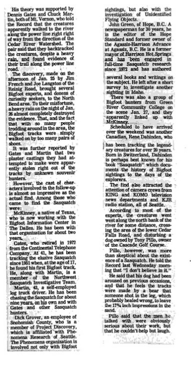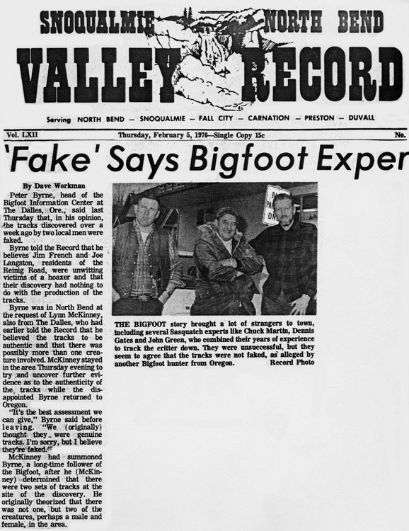 Snoqualmie North Bend Valley Record - "Fake" says Bigfoot Expert