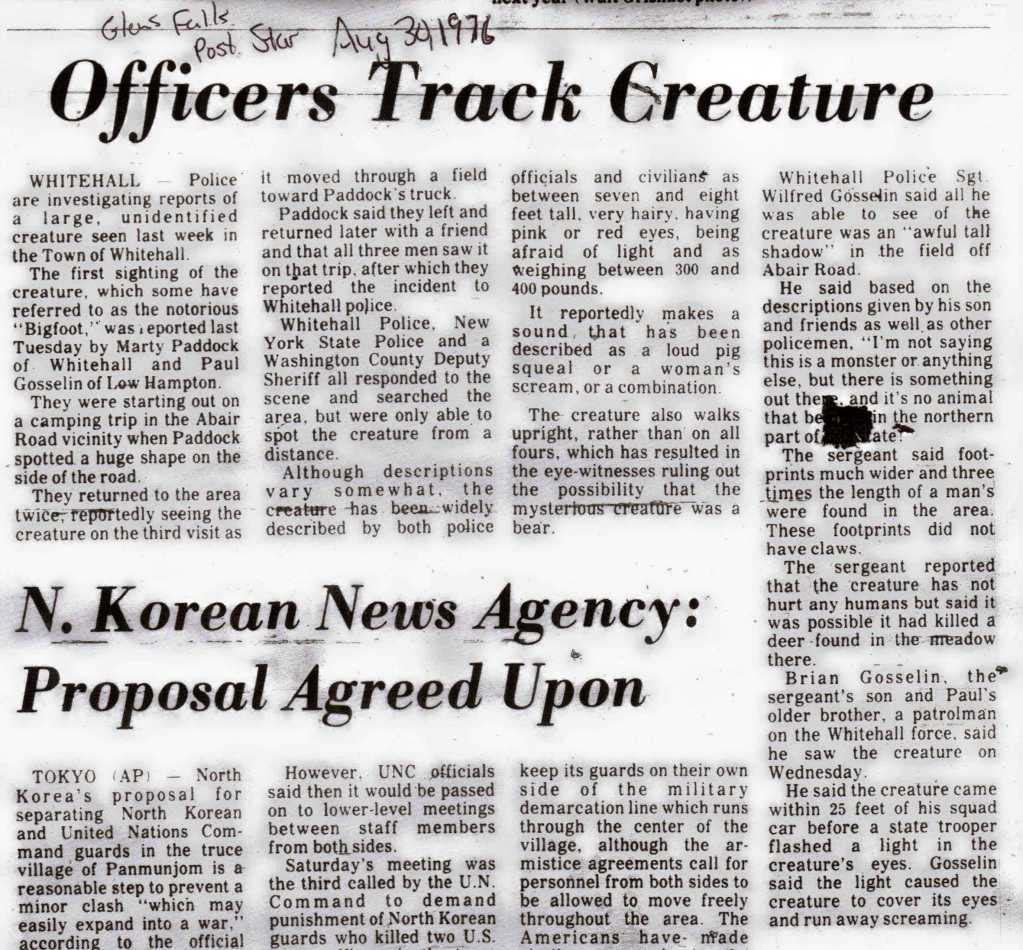 Glen Falls Post Star Aug 30, 1976 Bigfoot Article