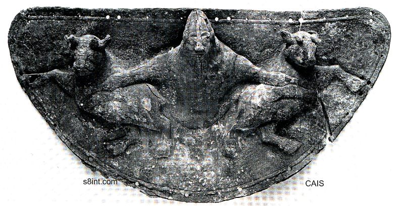 This is a Iranian horse breastplate made from a copper alloy from around 800-900 BC. The creature