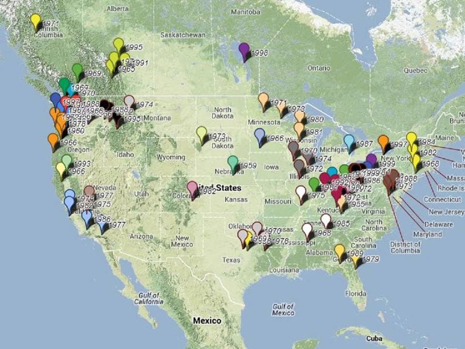 A map showing sighting reports for white Bigfoot, I found this while doing a search for bi-color squatches.