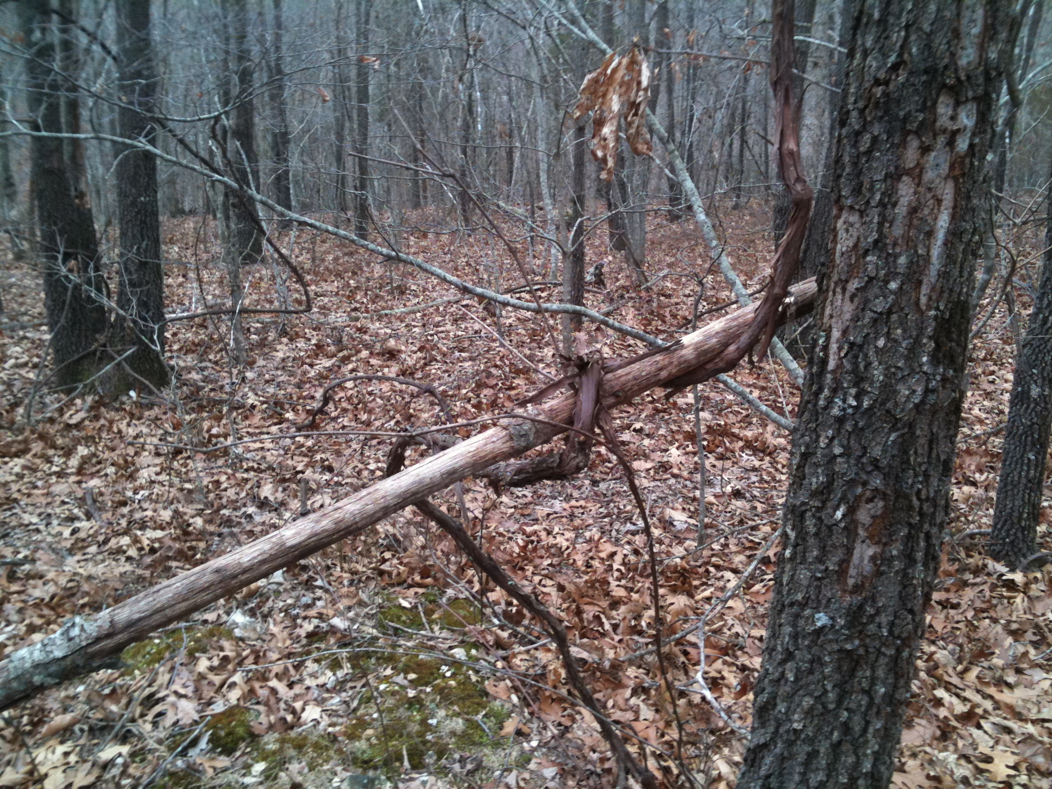 Here is one of my latest finds in my wanderings. With the way the vine is wrapped around the tree twice makes me think that it could only be done by something with hands. Not a big tree only about 3 1/2 inches diameter. It is at least 14 foot from break to the vine wrapped end. What do you think. Anyone see things like this before?