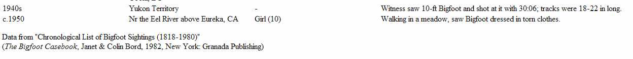 Chronological List of Bigfoot Sightings 1901 - 1950