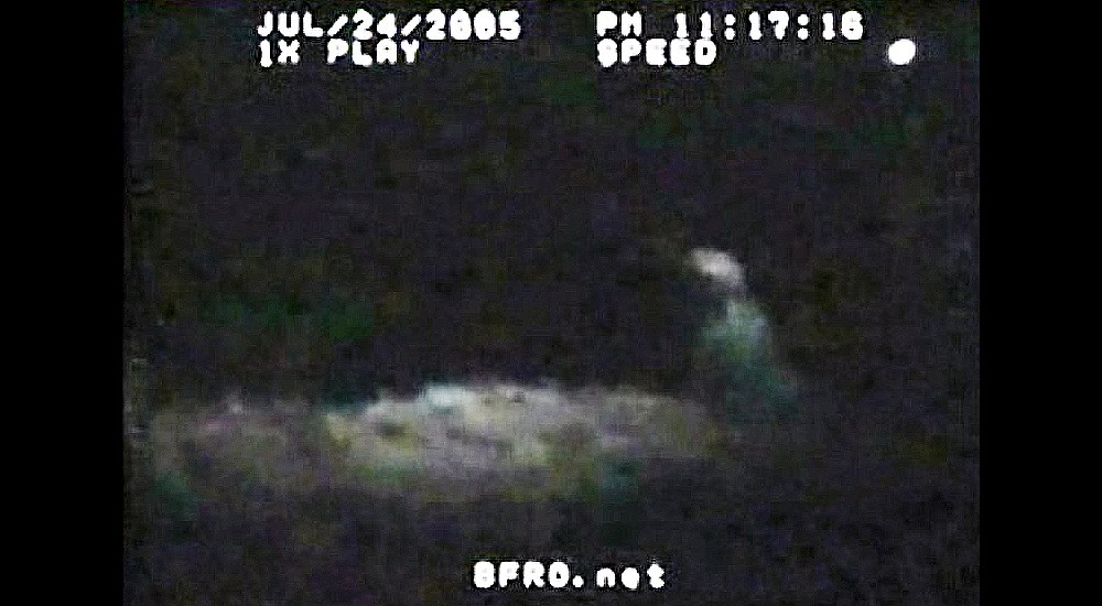 Apparently, by Suzie’s account, our visit upset the animals, because Suzie told Gary that for three days afterward nothing touched the food she left for them, and that the plates were turned upside down on top of the food. But eventually she was forgiven and the animals began to take the food again. Later, Gary and others rigged up a night-vision camera and some infrared LEDs to shine down over the area where the creatures would take the pancakes. Using this technique another film was obtained. I’ve seen this film and I find it as ambiguous as the first film. Again, the creature’s head is very large, while the arms are much shorter than one would expect. The low light conditions make it impossible to see enough to verify whether this is indeed a bigfoot, perhaps a young one, taking the pancakes and eating them. If it is, then bigfoot do not look quite as I thought they would, given years of reports and the Patterson Gimlin film as a guide. Or at least that bigfoot doesn’t.
